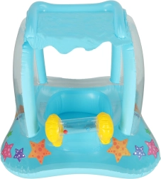 Napihljiv plavalni krog z baldahinom je idealna rešitev za varne vodne igre vaših najmlajših. Njegova privlačna modra barva in barvne zvezdice bodo polepšale vsak dan ob vodi. Baldahin ščiti otroka pred sončnimi žarki, medtem ko se lahko udobno igra in zazibava na valovih.