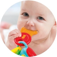 Raznolike površine ključev nežno masirajo dlesni in pomagajo ublažiti nelagodje med rastjo zobkov.