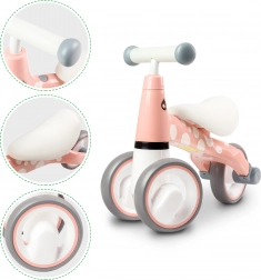 Mehko sedež zagotavlja udobje med vožnjo. Kolesa so narejena iz zelo trpežnega materiala, zato jih je mogoče uporabljati tako znotraj kot zunaj. Poleg tega so kolesa pokrita s prožnim materialom, ki ne praska tal in zagotavlja odličen oprijem.