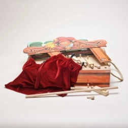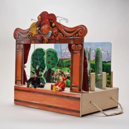 Leseno gledališče z 2 dvostranskimi kulisami in 8 lutkami. Ročno izdelane lutke z možnostjo razširitve z dodatnimi lutkami in kulisami.
