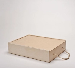 Celoten komplet je praktično zapakiran v lesenem kovčku z drsnim pokrovom za enostavno prenašanje.