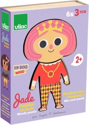 Sestavljanka z oblačili Jade s 6 različnimi oblekami omogoča otrokom ustvarjanje neštetih kombinacij in razvijanje njihove kreativnosti ter motorike. Vsebuje 18 delov v praktični škatli.