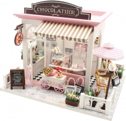 Čokoladnica v nežnih rožnato-belih tonih deluje kot majhen izložbeni prostor z vitrinami, polnimi “dobrot”, s stilsko markizo in prikupnim sedežnim kotičkom. Končni model lepo izstopa na polici in je izvirno darilo za ustvarjalne duše od 14. leta dalje.