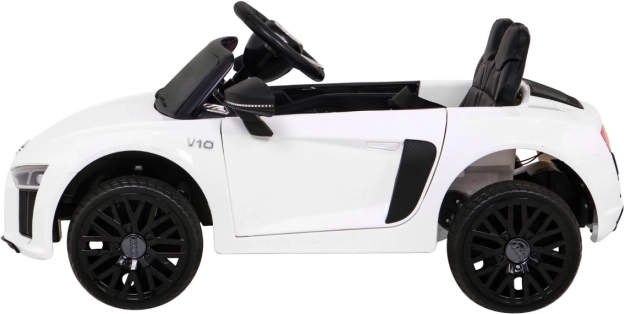 LED luči spredaj in zadaj, panel MP3/USB/SD/AUX in gumba na volanu. Odpiralna vrata in avtentični elementi vozila AUDI R8 bodo razveselili vsakega otroka.