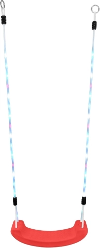 Zagugajte se proti nebu s to varno in veselo rdečo gugalnico za otroke! Trpežen plastičen sedež, LED vrvi z več načini in daljinsko upravljanje poskrbijo za odlično zabavo doma in na vrtu. Nosilnost 75 kg, dolžina vrvi 180 cm, primerno od 3 let naprej.
