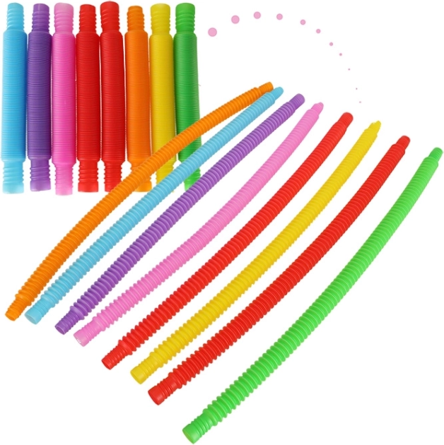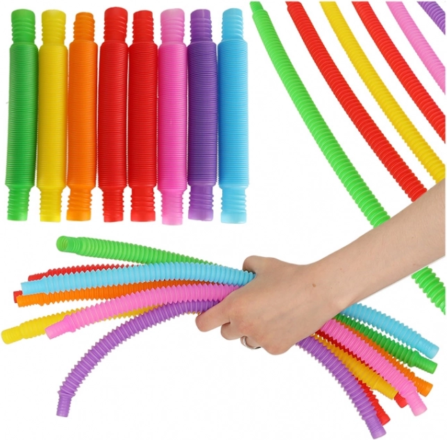 Odkrijte čar senzoričnih cevi, ki jih otroci obožujejo! Vsaka izmed osmih barvnih cevi ponuja ure zabave zaradi svoje prilagodljive narave. Lahko jih raztezamo, zvijamo in povezujemo v različne oblike, s čimer otrokom omogočamo prostor za ustvarjalnost.