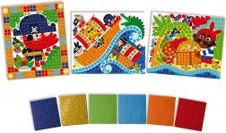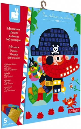 Mozaika za vse male pirate. Lepe mozaike s pisano ilustracijo vsebujejo 6 listov z bleščečimi in barvnimi mozaiknimi nalepkami. Mozaika spodbuja otrokovo tipno zaznavanje. V pakiranju so 3 slike s pirati (dimenzije 25 × 21 cm). Primerno za otroke od 5 let. Set Janod Atelier za ustvarjanje spodbuja spretnosti in domišljijo pri otrocih. Ustvarjalne igrače za otroke ne zavzamejo veliko prostora, primerne so na poti in doma, v zdravju in bolezni, ter zabavajo otroke dolge ure. Ustvarjanje z različnimi tehnikami spodbuja osredotočenost in koncentracijo, naravno raziskovanje ter likovne sposobnosti.