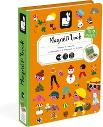 Magnetna knjiga Janod Magnetibook – letni časi razvija domišljijo, logično razmišljanje in fino motoriko. Otroci po karticah sestavljajo prizore posameznih letnih časov ter izbirajo ustrezna oblačila in dodatke. Zaradi kompaktne oblike v obliki knjige je idealna za potovanja, v avto in na obiske.