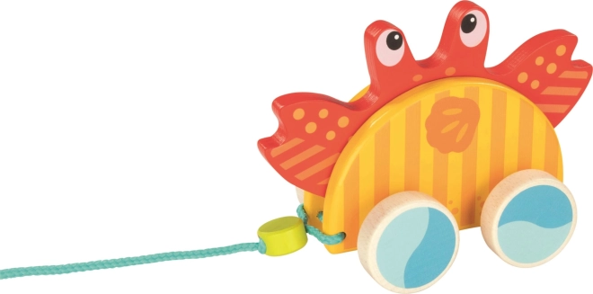 Ta barvita vlečna igrača v obliki raka je izdelana iz kakovostnega masivnega lesa, kar zagotavlja dolgo življenjsko dobo in varnost za otroke. Kolesca igrače spominjajo na morske valove, kar jo dela igrivo in opazno popestritev otroške sobe.