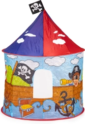 Z našim igralnim šotorom lahko vsak malček postane pirat in se odpravi na veliko pustolovščino iskanja skrivnostnega zaklada. Piratski motivi naredijo igro še bolj privlačno.