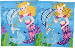 Kreativni set za otroke od 5 let, ki razvija fino motoriko in domišljijo. Vsebuje 5 čudovitih slik morskih vil in delfinov ter 10 listov bleščečih in barvnih nalepk za ustvarjanje mozaika. Enostavno lepljenje, pisani motivi in dolge ure zabave doma in na poti.
