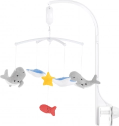Pomirite dojenčka z nežnimi melodijami in gladkim vrtenjem – glasbeni viseči vrtiljak CHIPOLINO z motivom vodnega sveta je primeren za novorojenčke, spodbuja razvoj vida in sluha in ga lahko zahvaljujoč univerzalni sponki preprosto pritrdite na posteljico ali stajico; na voljo sta nastavitev glasnosti in odstranljive plišaste igrače za enostavno vzdrževanje.