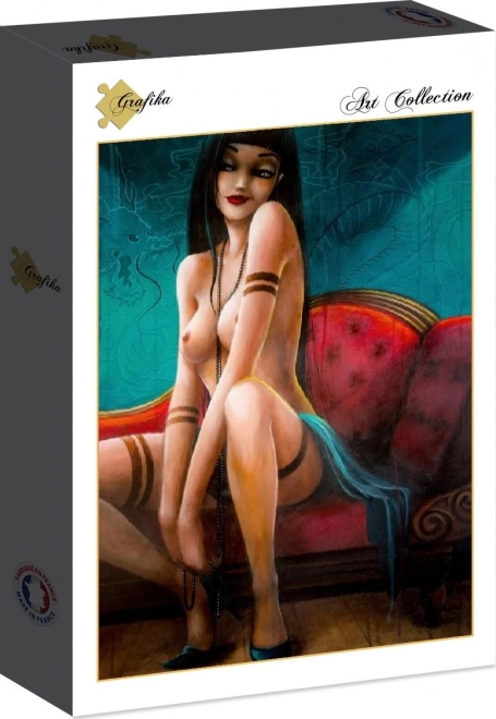 Odkrijte lepoto in podrobnosti umetniškega dela s sestavljanko 'Miss Dragon' znamke Grafika. Ta sestavljanka s 1000 kosi je del kolekcije 'Erotičnost in čutnost' in je namenjena odraslim navdušencem nad sestavljankami. Z dimenzijami 69 x 47,8 cm prikazuje delo francoske umetnice Misstigri, ki je natančno upodobljeno na kakovostnem kartonu.