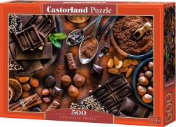 Odkrijte veselje sestavljanja s sestavljanko Castorland Čokoladne dobrote. Dovršen in mamljiv motiv sladkarij bo razveselil vse ljubitelje slaščic in kakovostnih sestavljank. Zaradi 500 natančno izrezanih kosov je sestavljanje tekoče, rezultat pa deluje kot dekorativna slika, primerna za uokvirjanje.