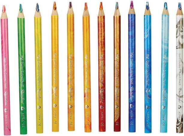 Lesene trikotne barvice ASTRA velikosti jumbo so zasnovane za udoben oprijem in največjo ustvarjalnost. Posebna večbarvna sredica pri vsakem potezu ustvarja pisane, gladko spreminjajoče se črte brez potrebe po obračanju barvice. Odlične so za risanje vode, trave, neba ali peska, kjer izstopajo naravni barvni prehodi.