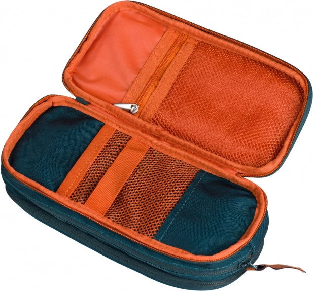 Tri ločeni predelki z zadrgo omogočajo pregleden razpored pisal in drugih predmetov, kar poenostavi iskanje.