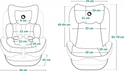 Za višjo varnost je sedež opremljen s 5-točkovnim pasom z mehkimi blazinicami in stransko zaščito iz PP in EPS za učinkovito absorpcijo energije ob trku. 7-stopenjska nastavitev naslonjala za glavo in 4 položaji nagiba poskrbijo za ergonomijo in udobje v vsaki fazi rasti. Snemljiv prevlek je enostavno prati, zato je vzdrževanje hitro in brezskrbno.