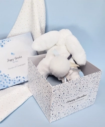 Zajček je dobavljen v elegantni darilni škatli, ki poudari njegov razkošen značaj. Za ohranitev mehkobe priporočamo pranje pri 30 °C in sušenje naravno ali pri nizki temperaturi.