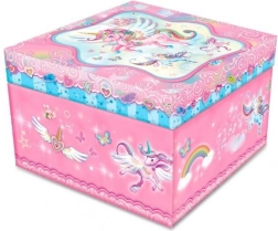 Ta čudovita škatlica za nakit z motivom enoroga je idealna za shranjevanje majhnih zakladov in nakita. Takoj ko odprete pokrov, enorog začne plesati na klasično melodijo. Ko melodija konča, preprosto navijete mehanizem za ponovno predvajanje.