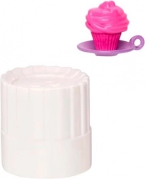 Prisrčen rožnat kolaček na krožničku je del kompleta in se popolnoma prilega Barbijini roki, kar obogati igro.