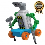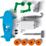 - motor z menjalnikom in baterijskim modulom, deli robota, barvne nalepke, navodila