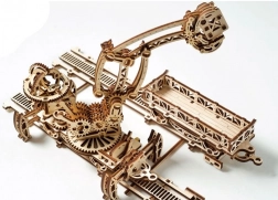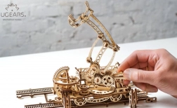 Zgradite atmosferično železniško pretovorišče in opazujte, kako se celoten model zahvaljujoč pametnim mehanizmom prebudi k življenju. Manipulator in vagon se lahko premikata po dveh odsekih proge skupaj ali samostojno, žerjav dejansko dviguje zabojčke, podrobno zasnovano ogrodje hale pa dopolni prizor. Idealno za ljubitelje mehanike, modelarstva in dizajnerskih lesenih kompletov.