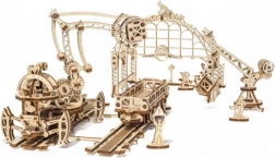 Odkrijte čar mehaničnega sveta s tem premišljeno zasnovanim lesenim modelom Ugears. Set iz serije Mechanical Town ponuja funkcionalni pretovorni žerjav, vagon in upravljalni manipulator s kolescem in ročicami. Uživajte v srednji zahtevnosti, 354 natančno izrezanih delih in impresivnem dioramu z halo, tiri, zabojčki in figuricami.