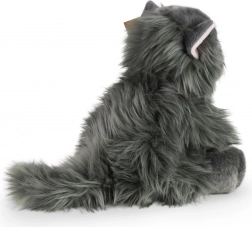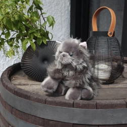 Dolg, zelo mehak siv pliš, modre oči in rožnata ušeska naredijo iz mačke zvestega ljubljenčka in čudovito dekoracijo.