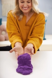 Del kompleta je 454 g vijoličnega peska, lopatka in modelčki (npr. grad, rak, želva), s katerimi bodo otroci ustvarili nešteto oblik. Pesek nikoli ne izsuši, zato se lahko k igri znova in znova vračate. Odlična alternativa plastelinu in drugim ustvarjalnim materialom – primerna za domače delavnice, Montessori aktivnosti in kot darilo za deklice in dečke.