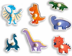 Ta lesena vstavljanka z motivom dinozavrov je idealna izobraževalna igrača za predšolske otroke. Vsak barvni košček predstavlja drugo vrsto dinozavra, zahvaljujoč majhnemu ročaju pa ga otroci zlahka primejo in vstavijo na pravo mesto. Trdna lesena plošča služi kot okvir in podlaga, ki pomaga pri orientaciji in uri natančnost.