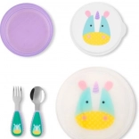Pripeljite otroke do samostojnosti pri prehranjevanju s tem simpatičnim jedilnim kompletom. Vsak set vsebuje ikonične like ZOO, krožnik s protizdrsnim dnom, skledo s pokrovom in ustreznimi jedilnimi pribori. Komplet je primeren za otroke, stare 12 mesecev in več.