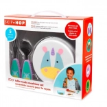 Naš otroški jedilni set ZOO Samorog je zasnovan tako, da spodbuja samostojnost malčkov pri prehranjevanju. Kompleti vključujejo: