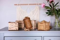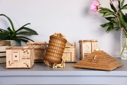 Elegantno leseno ohišje z natančnim graviranjem zagotavlja vzdržljivost, lep videz in prijeten občutek pri reševanju uganke.