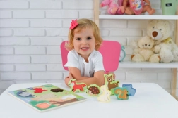 Zaradi odporne lakirane površine in gladkih robov je igrača primerna za vsakodnevno igro. Spodbuja koordinacijo oko–roka, potrpežljivost in zbranost, pri tem pa otroci naravno spoznavajo živali iz gozda.