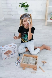 Ta ustvarjalni set je idealen za male pustolovce, ki imajo radi izkopavanja, dinozavre in igro v pesku. Otroci lahko iščejo in prepoznavajo najdbe, ustvarjajo lastne arheološke odprave ter razvijajo fino motoriko in domišljijo. Kinetični pesek je večkrat uporaben, se ne lepi na roke in ga je enostavno pospraviti.