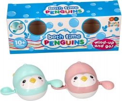 Ljubki pingvini v pastelnih barvah so idealni za vsakodnevno kopanje. Zahvaljujoč preprostemu mehanskemu navijanju brez baterij varno plavajo ter spodbujajo otroke k igri in razvoju fine motorike. Gladke oblike in prijetne barve zagotavljajo, da jih bodo otroci takoj vzljubili.