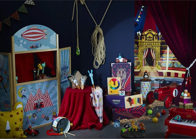 Dopolnite avtomobilček z drugimi izdelki v istem slogu – glasbeno skrinjico, ropotuljico ali dežnikom – in ustvarite usklajen svet poln domišljije.