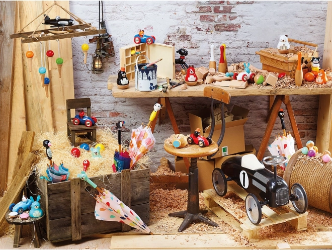 Izdelava poteka v regiji Jura v Franciji z uporabo posebne tehnologije potopnega lakiranja, ki zagotavlja gladko površino in visoko odpornost. Idealno kot darilo za najmlajše – navduši tako z videzom kot s funkcionalnostjo.