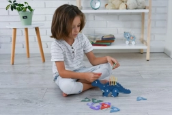 Barvite dinozavrske sestavljanke pomagajo otrokom izboljševati njihove fine motorične spretnosti in koordinacijo.