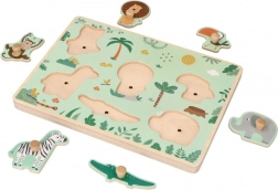 Z zahvaljujoč tej zvočni predstavitvi sestavljanke se otroci naučijo ne le oblik, temveč tudi zvokov živali s safarija. Podpira razvoj fine motorike in slušnega zaznavanja.