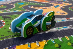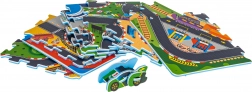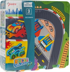 Končna podloga velikosti približno 92 × 92 cm odlično služi kot igralna površina za avtomobilčke in hkrati kot toplotna izolacija od tal. V paketu najdete tudi 6 delov za sestavo prikupne dirkalne formule, ki dvigne dirkalno zabavo na višjo raven.