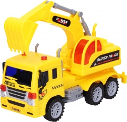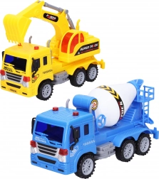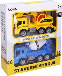 Gradbena vozila 23 cm z bagrom, mešalcem in prometnimi znaki. Primerno za vse male gradbenike.