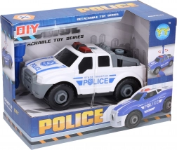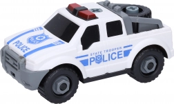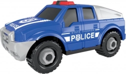 Sestavite si lastno policijsko vozilo in se podajte v akcijo! Vijačni policijski pick-up z merami 17 × 8 × 7,5 cm razvija fino motoriko, logično razmišljanje in potrpežljivost. Zahvaljujoč prostim kolesom se avto zlahka premika in je pripravljen za vsakodnevno igro.