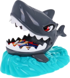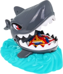 Odprite čeljust morskega psa, vstavite vse ribice in izvlecite kartico – barvo in število ribic, ki jih morate potegniti. Igrajte tiho in natančno, saj ko morski pes zazna gib, zapre čeljust! Dinamična glasba stopnjuje napetost, svetleče oči morskega psa pa dodajo vsaki partiji pravo energijo.
