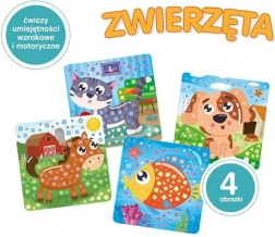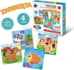 Zabava je zagotovljena zahvaljujoč setu 4 slik, na katere otroci lepijo penaste elemente v obliki krogca, kvadrata ali trikotnika. Na ta način ustvarjajo čudovita dela.