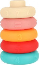 Zlaganje in razvrščanje barvnih obročkov uri prijem, koordinacijo oko–roka in potrpežljivost. Idealna prva logična sestavljanka za malčke.