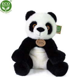 Ta sedeča plišana panda je del ekskluzivne kolekcije mehkih igrač. Zaradi skrbne ročne izdelave deluje realistično in je prijetna na dotik. Okolju prijazno polnilo iz recikliranih PET steklenic je v celoti atestirano in na otip nerazločljivo od standardnih materialov.