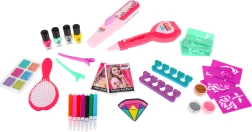 Čudovit set 3v1 za dekleta je idealen za kreativno stiliranje barvnih las, manikure in tetoviranja. Ta set združuje varne in netoksične kozmetične pripomočke, ki jih po koncu zabave zlahka odstranite.