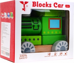 - 1 osnova s kolesi, 2 zatiča, 6 kock (skupaj 9 delov)
