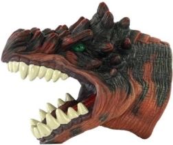 Vsako igro spremenite v majhno dinozavrsko gledališče. Gumijasta dinozavrska lutka za roko ima premično čeljust, zato zlahka oživi vsako rjovenje in ugriz. Mehka guma je prijetna na dotik in se prilagodi tako otroški kot odrasli roki.